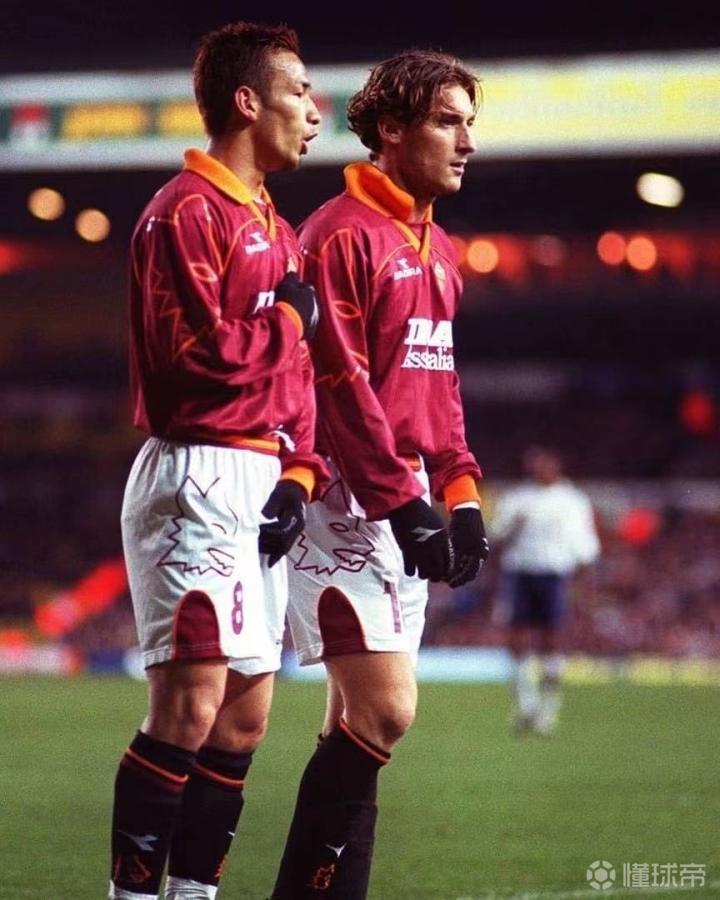 足坛老照片,罗马时期,日本球员中田英寿、意大利罗...