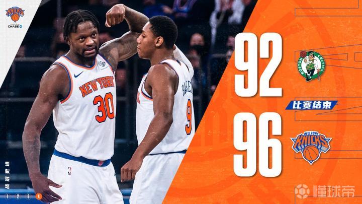 本场比赛尼克斯兰德尔带队捍卫主场,险胜绿军,锁定东部第四。赛前凯尔特人已经确定东部第七排名,主将悉数休战。前三节尼克斯打的顺风顺水但是末节凯尔特人爱德华兹和罗密欧联手打出一波15-0的攻击潮,险些逆转;决战阶段兰德尔关键助攻和罚球确保尼克斯取得胜利,最终96-92险胜凯尔特人,锁定东部第四,守住主场优势,季后赛将对阵老鹰。凯尔特人将在附加赛主场对阵奇才。本赛季,尼克斯核心兰德尔进步明显,很有可能荣膺快进步球员,同时也有可能进入一阵。数据方面尼克斯这边兰德尔20分7板7助,巴雷特22分;凯尔特人这边帕克18分7板,沃特斯17分5板5助。