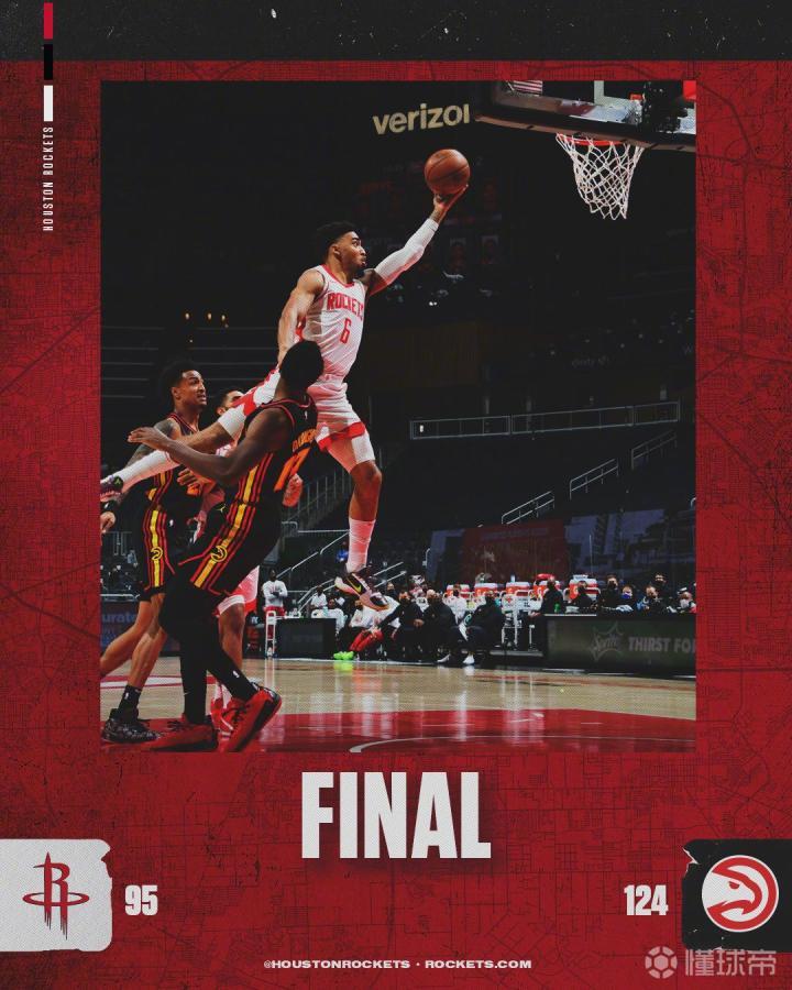 本场比赛不关乎季后赛席位,双方都进行了大面积的轮休,最终老鹰凭借更厚的阵容深度,8人得分上双大胜火箭,四连胜完美收官。首节双方打的你来我往,分差也没有拉开;次节特雷-杨和路威等人爆发,分差来到18分;第三节老鹰高歌猛进,分差继续扩大;末节双方进入练兵阶段;最终老鹰124-95大胜火箭。老鹰本赛季东部第五,季后赛将对阵尼克斯;火箭早早锁定联盟倒数第一的位置,向着重建大阔步前进。数据方面老鹰这边奥孔古21分14篮板,特雷-杨10分9助攻;火箭这边奥古斯丁18分4篮板5助攻,奥利尼克16分6篮板4助攻。
