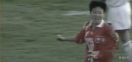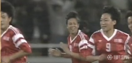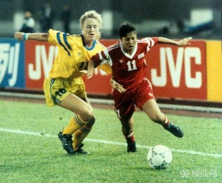 (图)91年世界杯对阵丹麦攻入世界杯首球后的孙雯(图中9号)