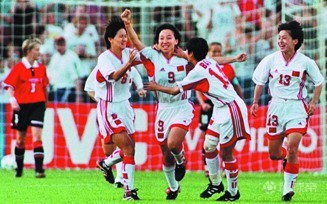 (图)95年世界杯小组赛最后时刻进球扳平美国后的孙雯