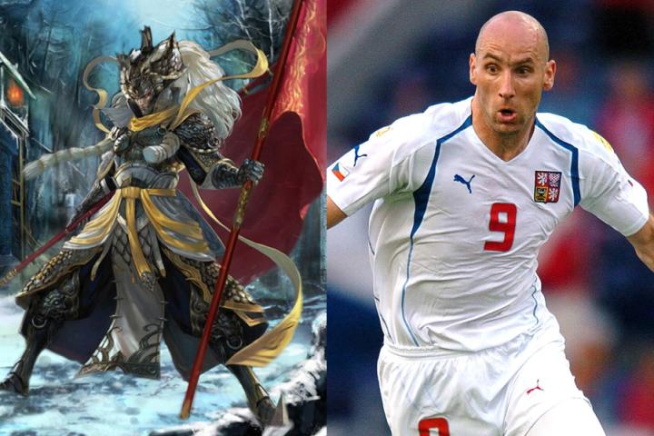 科勒,身高2.02米,欧洲杯历史上最高的球员。他参加过2000年、2004年和2008年三届欧洲杯,是捷克黄金一代的代表人物。在2004年欧洲杯上,他与巴罗什“一高一快”的经典组合威震八方,给世人留下了深刻的印象。小组赛对阵橙衣军团,两队打出了对攻足球的巅峰之作。捷克人在0-2落后的情况下以3-2完成逆转,科勒为球队打进了第一个进球。1/4决赛对阵丹麦队,捷克队在第50分钟获得角球机会,科勒在门前8米处以一记教科书式的头槌将球顶入球门右上角,帮助球队最终以3-0完胜对手。正当人们将捷克队列为夺冠热门的时候,他们却在半决赛中倒在了希腊神话的脚下。2008年欧洲杯,35岁的科勒神勇依旧。在小组赛对阵土耳其的比赛中,他再次打进教科书式的头球。然而捷克人这次却成为了经典比赛的背景墙,他们在2-0领先的情况下被星月军团以3-2逆转。最终捷克队没能小组出线,黄金一代悲情落幕。科勒也在结束欧洲杯之后宣布退出国家队。
