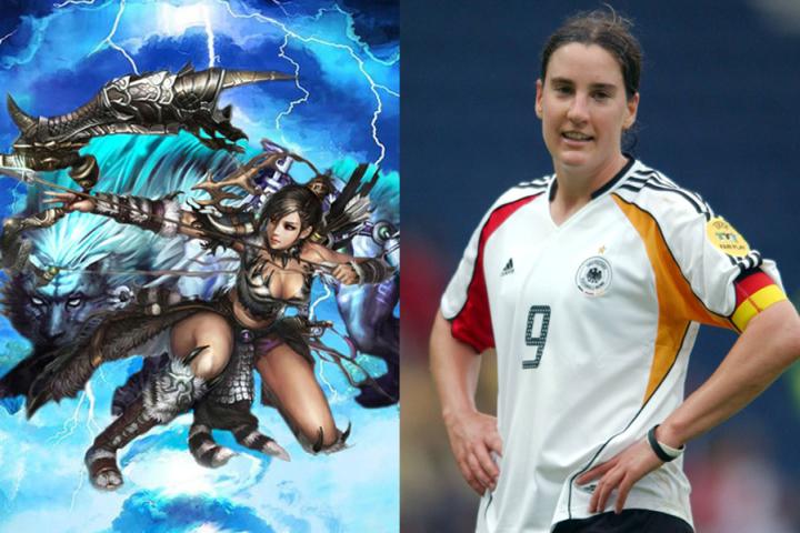 大虫是古时候人们对老虎的别称。虎是兽中之王,女足欧洲杯史上的“兽中之王”,非德国名将普林茨莫属。球场上的普林茨拥有德国足球传统的硬朗和坚韧,身材高大强壮,抢断凶狠,速度迅猛,仿佛猛虎下山,卷起狂风阵阵,令对手心惊胆寒。1994年,年仅16岁的普林茨便入选国家队,一年后随德国队获得欧洲杯冠军。在此之后,日渐成熟的普林茨开始统治欧洲足坛。由于身体条件和技术意识鹤立鸡群,让她在赛场上进球如探囊取物。她连续参加了1995年、1997年、2001年、2005年和2009年五届欧洲杯,进球如麻,并且全部夺冠,其王者地位无人可以撼动。