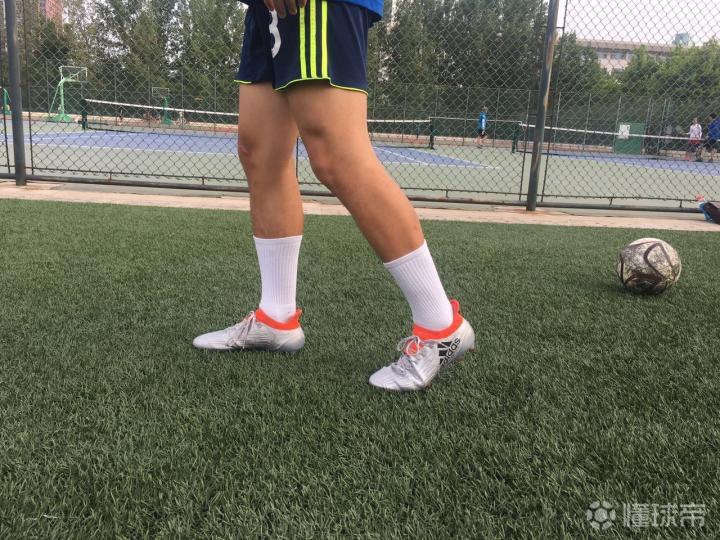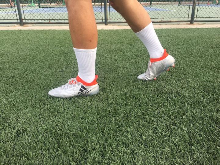 但穿着时自己并不会感受到磨脚或者挤压感,这可能就是Techfit的功劳了。启动和变向时鞋钉都非常给力,毕竟是以曾经保守好评的鞋钉设计为模板的。拍摄地的草地属中上,平时在此踢球就会穿FG,穿过504、505FG能驾驭的场地这双X应该都没问题。