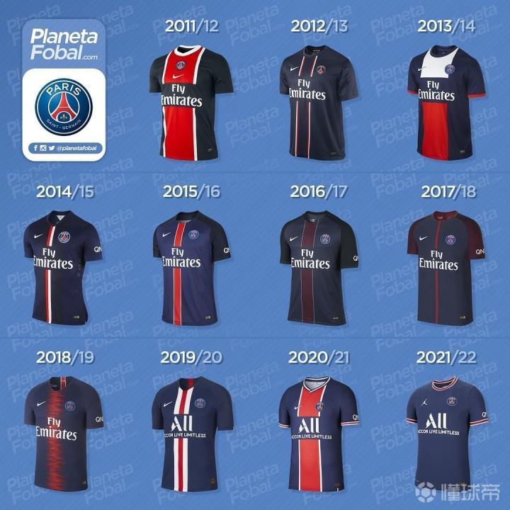 2011-2022赛季,巴黎圣日尔曼主场球衣演变史