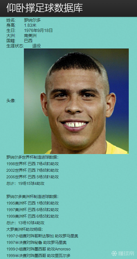 罗纳尔多世界杯制造进球数据:1998世界杯 巴西...