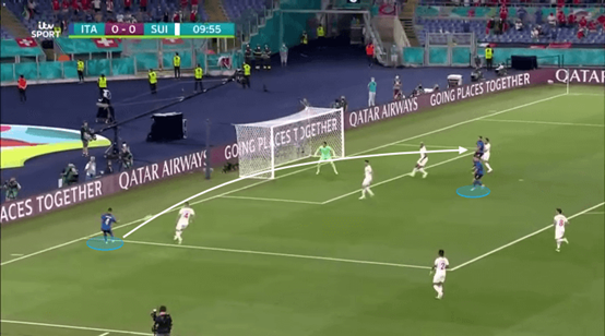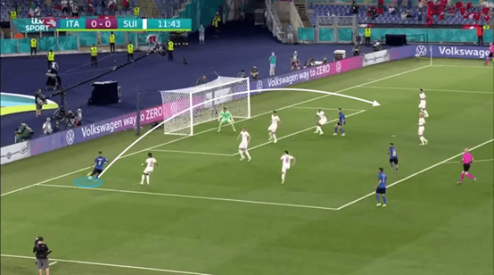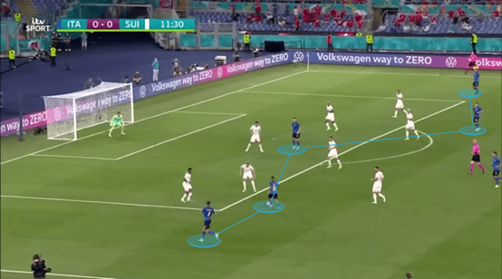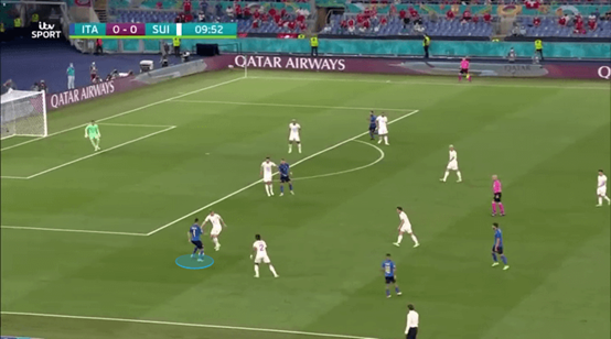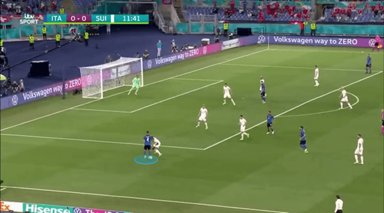这是一次不寻常的跑动,但随后斯皮纳佐拉扮演了一个更不寻常的角色,尽管主要使用右脚,但被要求成为一名套边者,担任意大利的第五个攻击手。