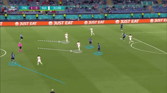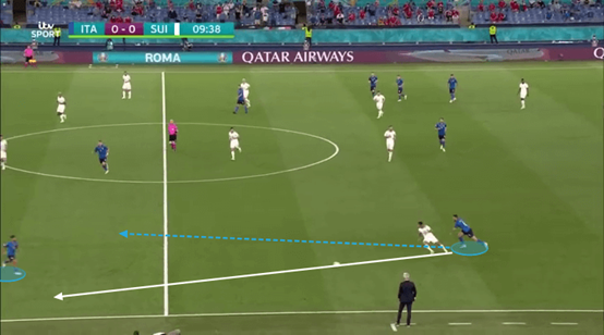 在3-0战胜瑞士的比赛中也是如此。因莫比莱不断地从左路内切,总是由斯皮纳佐拉在外围担任第五个攻击手。