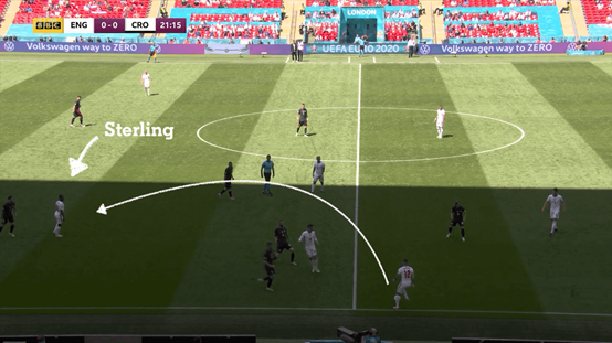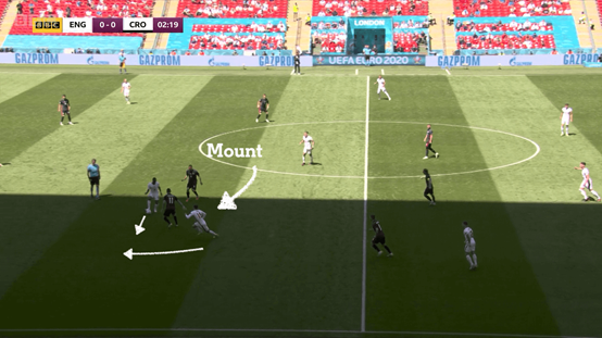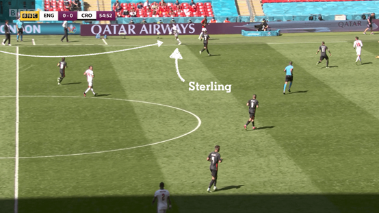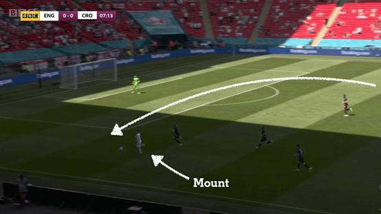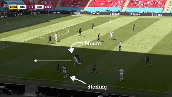 斯特林随后将球传给了芒特,只不过他的跑动有点晚,但英格兰如何利用这个左路三人组来推进球的意图很明显,这组移动如果没有一个在左后卫位置上对自己的右脚感到舒服的球员是不可能的。