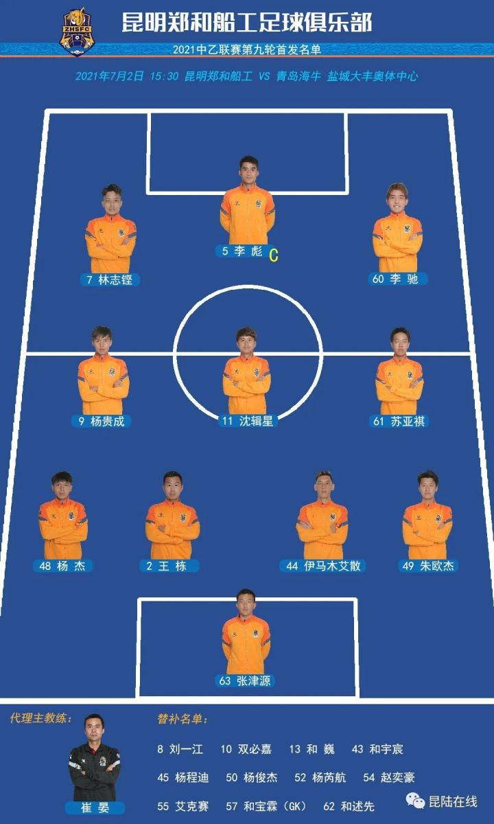 昆明郑和船工足球俱乐部赛后发布的赛事信息显示,带队指挥这场比赛的,是代理主教练崔晏。另外,球队首发阵容也发生了一些变化,林志铿、朱欧杰、张津源等球员首次代表球队首发出战。