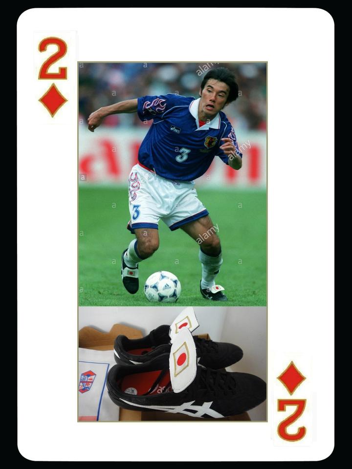 1998年世界杯上,还有另外一位日本国脚,他和川口能活的待遇一样,也穿着一双asics的f98 injector球鞋,他就是中国球迷终身难忘的日本后卫相马直树,1996年亚洲杯小组赛,中国队在末轮对阵日本,两队只需一场0比0默契球就可以携手出线,结果在终场前相马直树一脚世界波爆射绝杀了国足,国足本以为将被淘汰出局,全队上下几乎绝望,幸亏叙利亚爆冷击败了乌兹别克斯坦最终让国足起死回生。相马直树也是1998年世界杯日本队的主力左后卫,一直效力于鹿岛鹿角队,在退役后,他成为了一名教练,但还是爱穿asics的injector球鞋。