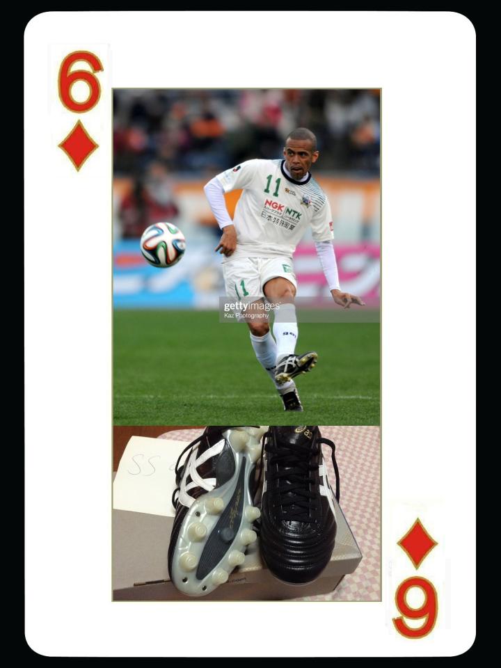 另一位日本归化的巴西球员三都主,2002年世界杯上,穿的是日本蓝猎鹰6mania足球鞋,但到了2006年世界杯,他就成为了asics的代言人,使用的injector 2006的专属定制款,三都主一直喜欢大鞋舌的球鞋,所以他的asics球鞋鞋舌非常大,2009年asics发布c3足球鞋后,他就一直使用c3,不过他的c3鞋舌也经过了定制,非常霸气。