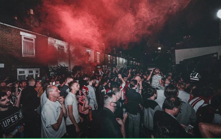 (格里芬公园外庆祝的球迷)