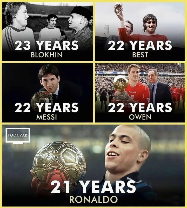 最年轻的金球奖得主:罗纳尔多21岁,欧文22岁,...林皇晃倒了林加德 @懂球帝2021-07-18 14:51最年轻的金球奖得主: 罗纳尔多21岁,欧文22岁,梅西22岁,贝斯特22岁,布洛欣23岁。展开更多