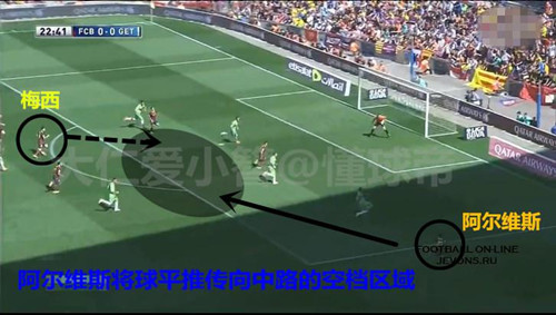 在中路没有高中锋当做支点的情况下,这才是适合巴萨的传中方式,也是中路渗透不成功后巴萨可以尝试的B方案。