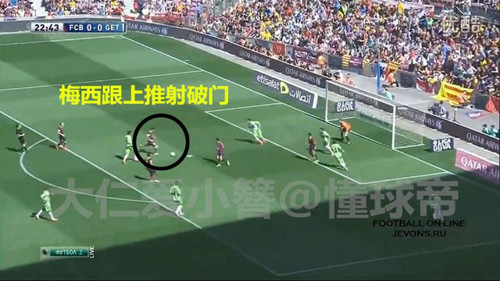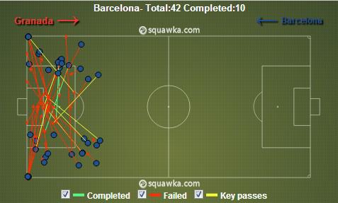 巴萨对阵格拉纳达的比赛中巴萨的传中示意图