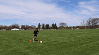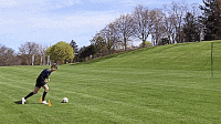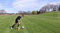 如果我们有队友,可以给我们传球,如果没有,我们可以把球扔起来,然后触球,就像下面这样完成射门,右脚重复10次,左脚重复10次。