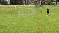 对于第二个练习,现在我们要从一个角度完成射门,球从侧面过来,我们1V1面对守门员,通常情况下,守门员会守住近门柱上,因为他们想保持与球在一条线上,这意味远门柱会暴露。