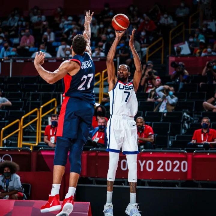 凭借杜兰特连续高强度的输出,美国队终于走到了奥运决赛场地,而他们的对手是本届奥运会唯一战胜过他们的法国队。比赛伊始,美国队旧病复发,三分打铁不断,前8次出手无一命中,其中包括杜兰特。