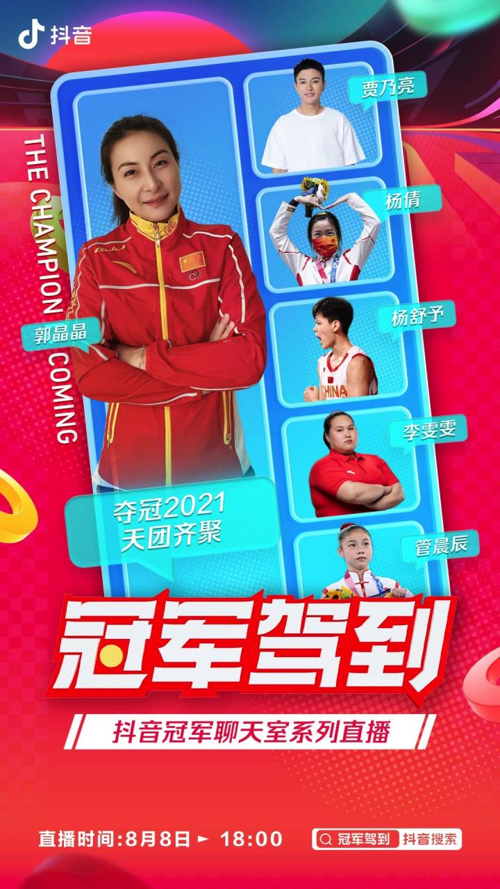 8月8日晚,跳水女皇、奥运会四金得主郭晶晶与管晨辰、李雯雯、杨倩、杨舒予等奥运健儿,以及演员贾乃亮共同亮相抖音「冠军驾到」直播间,在比赛闭幕之际,与全国网友分享赛场内外的点滴故事。