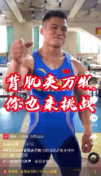 有意思的是,#背肌夹万物 挑战赛一经上线就引来网友热议,挑战赛由国家举重队冠军石智勇发起,一展举重运动员背肌力量的强大,不少网友表示还想看「背肌开瓶盖」「背肌夹核桃」等趣味挑战,好奇中国运动健将们的背肌还能夹什么。
