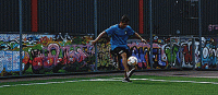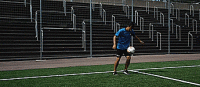 所以我们所要做的就是做一个交叉动作,但要比平常高一点,然后往触球方向旋转。如果我们用左脚做这个动作,我们就转到左边,如果我们用右脚做这个动作,我们就转到右边。