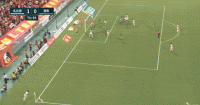 上半场补时阶段,藤田直之的“手榴弹”边线球掷进禁区,胡安马解围出来,随后藤田再次传中,塔加特头球破门,扳平比分。
