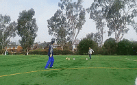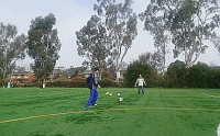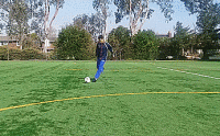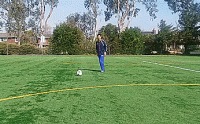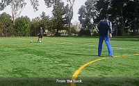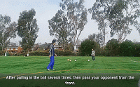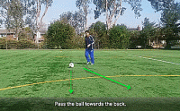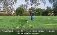 接下来我们学习如何声东击西传球,正常我们朝向队员,并将球传到队友脚下,但是我们也可以在即将传给队友时脚腕轻抖,传防守队员身后,这样会完全出乎防守队员的意料。
