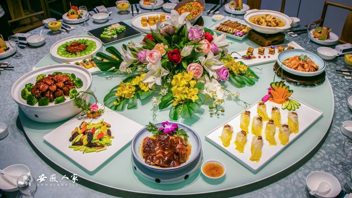 代表菜品:徽州毛豆腐、红烧臭鳜鱼、火腿炖甲鱼,红烧果子狸、腌鲜鳜鱼、黄山炖鸽等等。而安徽省绩溪县更是被授予中国徽菜之乡的称号,每年都会举办国际徽菜饮食文化节。在徽厨遍天下的时代,徽州菜肴达到鼎盛,经营者不仅继承徽菜的烹饪传统,把徽州人的食俗传到异乡他帮,还吸取各帮烹饪技术之所长,样样烹饪入味。发展出的菜品有:全家福、凤还巢、炒鳝糊、杨梅丸子、沙地鲫鱼、银芽山鸡、红烧划水、五色绣球、三虾豆腐、翡翠虾仁、红烧大烤、蜜汁火方、腐乳炸肉、雪映红梅、火煺烧边笋、松鼠溜黄鱼、砂锅鸭馄饨等数百种。 如今徽菜中还保留了一品锅、刀板香、腌鲜臭鳜鱼、虎皮毛豆腐、问政笋、火腿炖甲鱼、黄山双石(石蛙炖石耳)、杨梅圆子、凤炖牡丹、荷叶粉蒸肉、青螺炖鸭 、中和汤 等传统佳肴。安徽人家主打徽菜,经典菜品有:徽州臭鳜鱼、黄山毛豆腐、肥西母鸡汤、胡适一品锅、歙味刀板香、问政山笋煲、桐城水碗、菊花豆腐、中和汤、绩溪挞馃、黄山烧饼等。