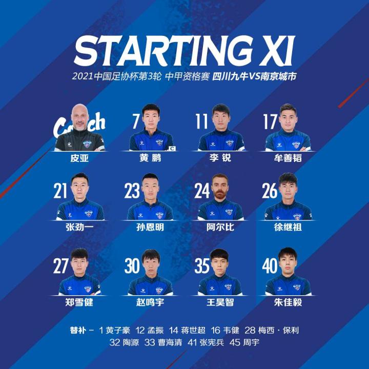 【出场名单】2021中国足协杯 第三轮 中甲资格赛 四川九牛vs南京城市