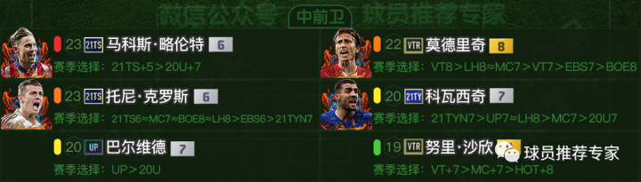中场位置最推荐的就是马科斯·略伦特了,真心宝藏。魔笛和托尼·克罗斯也是不错的第二选择。
