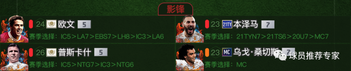 卡里姆·本泽马拥有出众的手感,全面的能力以及精湛的射术。本泽马盘带能力不俗,身体对抗也中规中矩,高空球方面的能力也具备,可以说是真心全面的一名前锋。中锋、影锋和前腰位置他都能胜任,最合适的位置是影锋。赛季选择方面21TYN、21TS、20U和MC都是不错的选择,银卡以上即可,具体几强如何选择参考上图中的赛季选择。