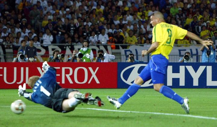 (图)2002年世界杯决赛,笑到最后的是罗纳尔多和巴西队