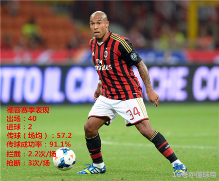 如今的德容已经不是那个“南德容,北佩佩”中的前者了,在蒙托利沃位置更加接近前场后,本赛季的德容已经成为了米兰的中场核心,拥有超高传球成功率的他更是超越了德罗西、皮尔洛等中场大脑,排在了意甲首位,同时优秀的防守能力也是他的看家本领,作为西多夫的同胞,他在西黑的调教下更是如鱼得水,联赛的尾声更是连入两球回报了他的老乡,其中甚至还进了一个任意球