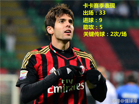 阿莱格里在卡卡的位置上一直犹豫不决,先后使用卡卡踢了前场的4个位置: