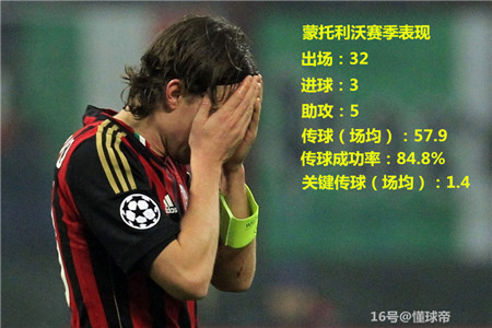 来到米兰后蒙托利沃的表现始终没有佛罗伦萨时期抢眼,在米兰的第二季更是被任命为了球队队长,年届30的蒙托利沃在米兰的任务要比紫百合时期重得多,既要组织进攻还要兼顾防守,在关键位置屡有犯错的他时而遭受到人们的非议,相信蒙托利沃在经历过今夏世界杯的洗礼,以及和皮尔洛一起训练后蒙托利沃能够变得更加成熟、更加稳定,传球思路更加清晰、更有创造力。