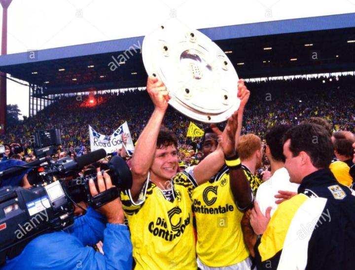 在赛季结束时,科勒尔似乎已经知道自己将被俱乐部出售,所以提前向球迷告别。而他的去向是已经接纳了他的尤文队友鲁伊特,塞萨尔和穆勒的多特蒙德俱乐部。94-95赛季,收纳了众多尤文弃将的大黄蜂,以一分优势力压不莱梅获得德甲冠军,而科勒的到来更是让多特蒙德变的无懈可击。95-96赛季,多特蒙德以6分优势强势卫冕德甲冠军。