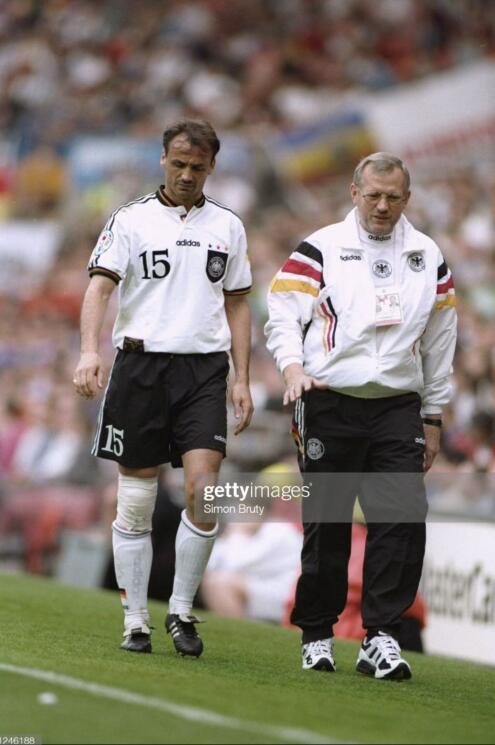 1996年欧锦赛,已近而立之年的科勒尔,也成为了德国国家队的大哥级人物,在首场和捷克队的小组赛中,他带上了德国队的队长袖标。正当科勒尔摩拳擦掌,准备身先士卒的时候,却来了个出师未捷身先伤。在开场14分钟就在和捷克前锋库卡的拼抢中受伤,被队医诊断后无奈下场,此后科勒就只能充当观众。没想到此后德国战车一路杀进决赛,在决赛中又金球绝杀捷克夺冠,此时科勒尔的心情可谓五味杂陈,作为队长无法上场和队友们一起拼杀实在遗憾,但是躺冠欧洲杯又弥补了他前两次参加欧锦赛无法夺冠的遗憾。
