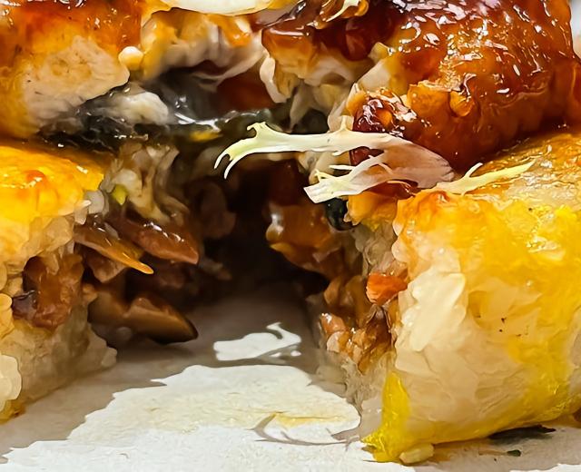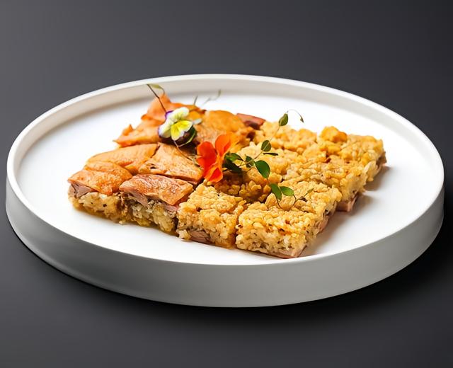 安徽人家酒店的大厨们吗,不断研创新品,经典再现了老香港风味。经典的糯米鸡,被做成了米饭饼的样子,糯米里包裹着满满的料,鸡肉香加上菌菇的鲜味,连着汤汁深深地融进了糯米里。