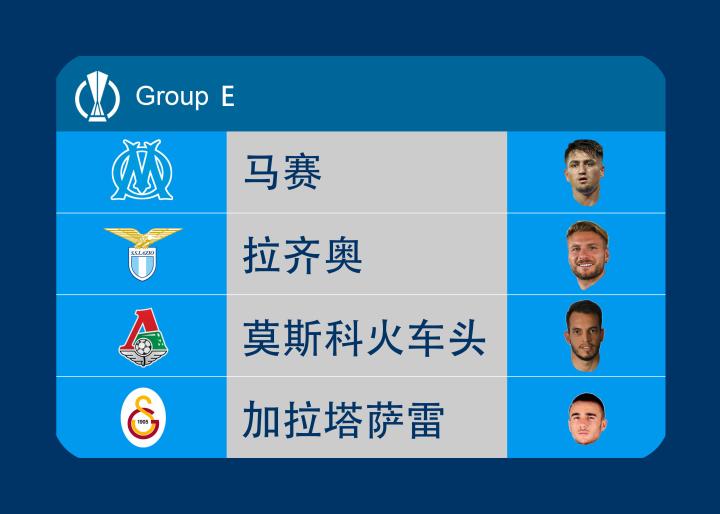 欧联E组各队核心人物 马赛-云代尔(Yunder),身高173CM,出生于1997年,土耳其右边锋,效力于奥林匹克马赛足球俱乐部足球俱乐部。 拉齐奥-奇罗·因莫比莱(Ciro Immobile),出生于1990年,意大利滨海小城托雷安农齐亚塔人,国家队主力前锋,曾获得2011-12赛季意大利足球乙级联赛金靴奖,以及2013-14赛季、2017-18赛季、2019-20赛季意大利足球甲级联赛金靴奖。 莫斯科火车头-吉列尔梅·阿尔文·马里纳托(Guillerme Alvin Marinato),俄罗斯卡塔瓜西斯人,出生于1985年,国家队主力门将,效力于俄罗斯足球超级联赛莫斯科火车头足球俱乐部。 加拉塔萨雷-阿克金(Akgin),身高173CM,土耳其前锋,出生于2000年,惯用脚为左脚,从小在加拉塔萨雷训练。19/20赛季在加拉塔萨雷U19梯队上场24次,其中20次为首发,贡献12进球1助攻。20/21赛季租借到代米尔体育,上场31次其中15次首发,并且贡献5进球1助攻。