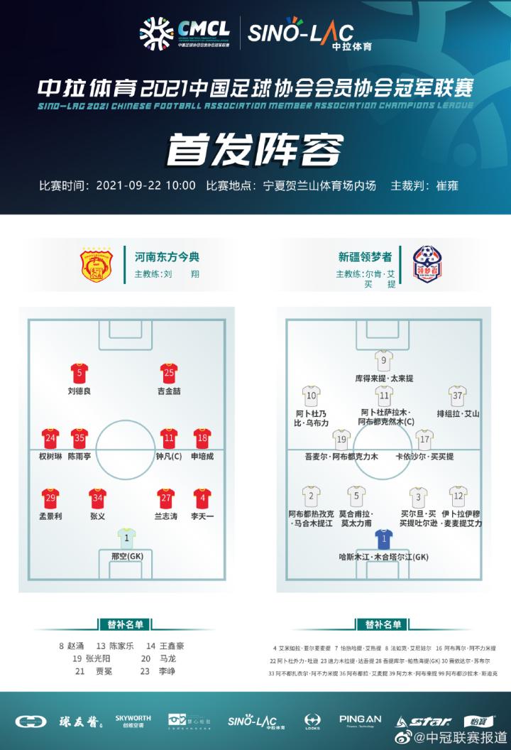 9月24日15:30,在A组第二轮中,河南东方今典将轮空,新疆领梦者将对阵东道主球队也是志在冲乙的宁夏人海溪。