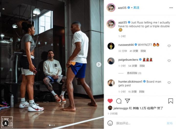 威少是NBA历史三双王,自然会有不少人想向他讨教拿三双的秘诀。近日,前全美第一女高中生、已承诺加盟康涅狄格大学的阿兹-福德(Azzi Fudd)更新Instagram,晒出她和威少的合影,称威少告诉她,拿三双关键在于抢篮板。
