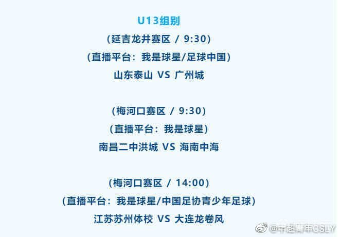 U13、U15全国青少年足球联赛总决赛10月8日...中超青年CSLY @懂球帝2021-10-08 22:27U13、U15全国青少年足球联赛总决赛10月8日部分直播场次比赛结果:U15组别:江苏苏州体校 1-1 广州执信富力河北足球俱乐部 0-2 申花江镇中学长春亚泰 3-2 沈阳城市广州队 4-2 江苏宝楠学校重庆江津中学 1-3 青岛海牛河南嵩山龙门 3-0 延边U13组别:山东泰山 1-0 广州城南昌二中洪城 4-1 海南中海江苏苏州体校 0-2 大连龙卷风展开更多