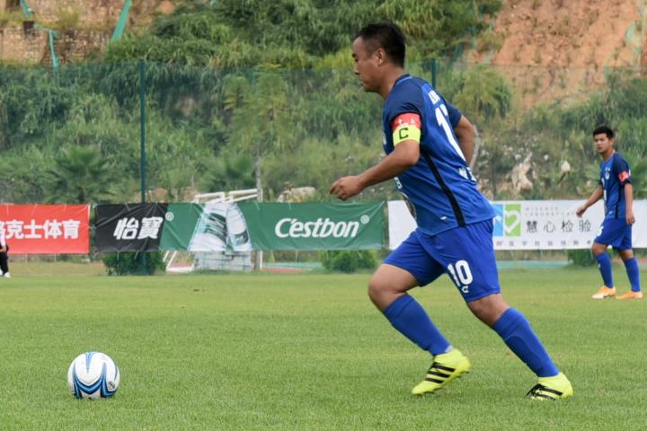(韩燕鸣身披昆明守护者的10号球衣,作为场上队长的中场核心征战中冠)