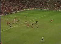当时贝克汉姆从左路开出任意球,但曼联的队员却没能抢到落点,反而被防守队员将球踢出了禁区,面对眼前尽是一片空旷的开阔地,得球的罗伯特·李向前狂奔,前方仅剩下为曼联把守大门的范德胡一人。