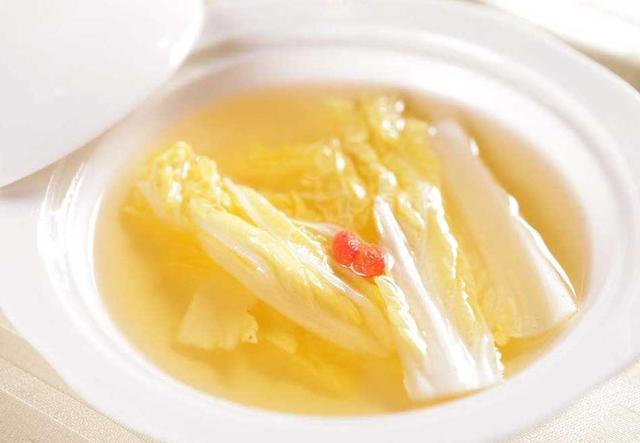 千万别因为“开水白菜”这朴实无华的菜名而小看了 它。白菜要选择最嫩的且只取当中菜心雕琢,烹饪时用热 水微微焯一下,迅速捞出过凉,然后取出并沥干水分,最 后以“开水”将菜心烫熟,菜心菜叶瓣瓣绽开如同莲花。