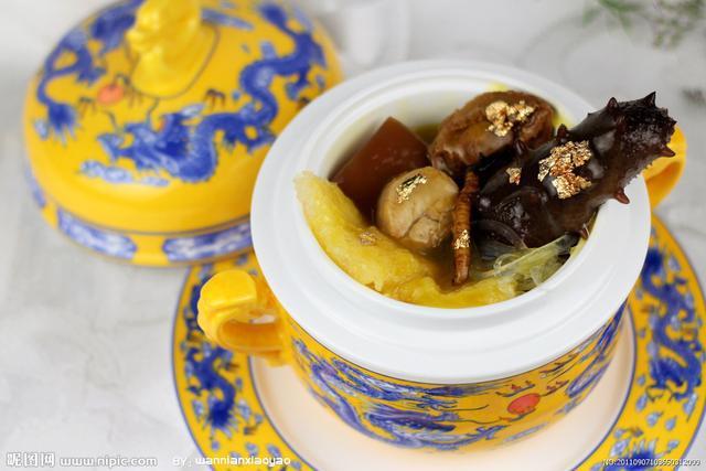 作为闽菜的经典菜肴, “佛跳墙”多次出战国宴, 在国宴菜的传说中一直占据一 席之地。它是一道集山珍海味精华 的著名闽菜,在很多人的心目中可谓中华传统美食扛鼎之 作。其最为骄傲的战绩,就是征服了布什、里根两位美国 总统和英国女王伊丽莎白的胃,让他们赞不绝口。