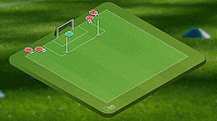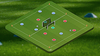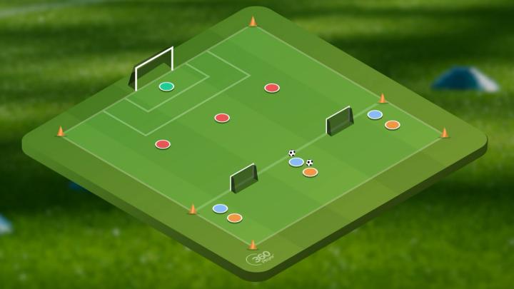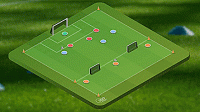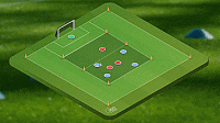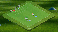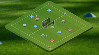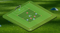 这个练习非常容易,我们要做的就是在格子的顶部进行四对二的抢圈,然后在对面设置一个有守门员的大球门。