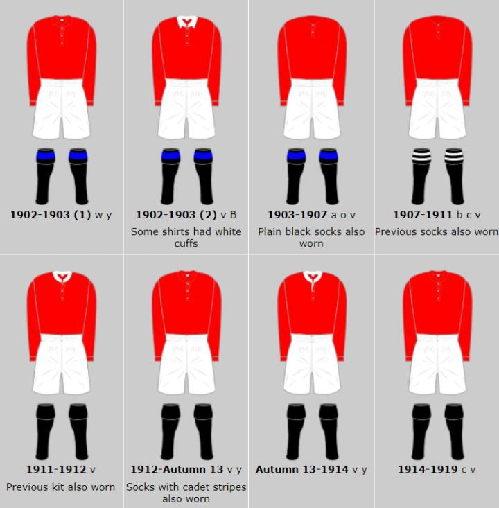 也是为了纪念这一次夺冠,曼联在1923至27年复刻了这件白色的冠军球衣,并将它作为联赛的主场球衣使用。同样出于“好运”这个理由,曼联还曾在1934年短暂地使用过一件红白条纹的主场队服。而在这之后,曼联每一年的主场球衣都是以红衣+白裤作为配色方案了。