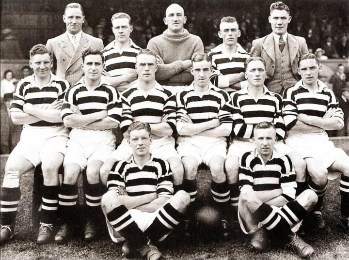 1880年,牛顿希斯得到了当地的一些资助,他们不仅把球衣的面料从破布升级成了羊绒,连设计也变得花哨起来。左侧深绿、右侧金黄的“一半一半”配色首次出现在球衣上——不用解释,一看就是铁路公司的主意。
